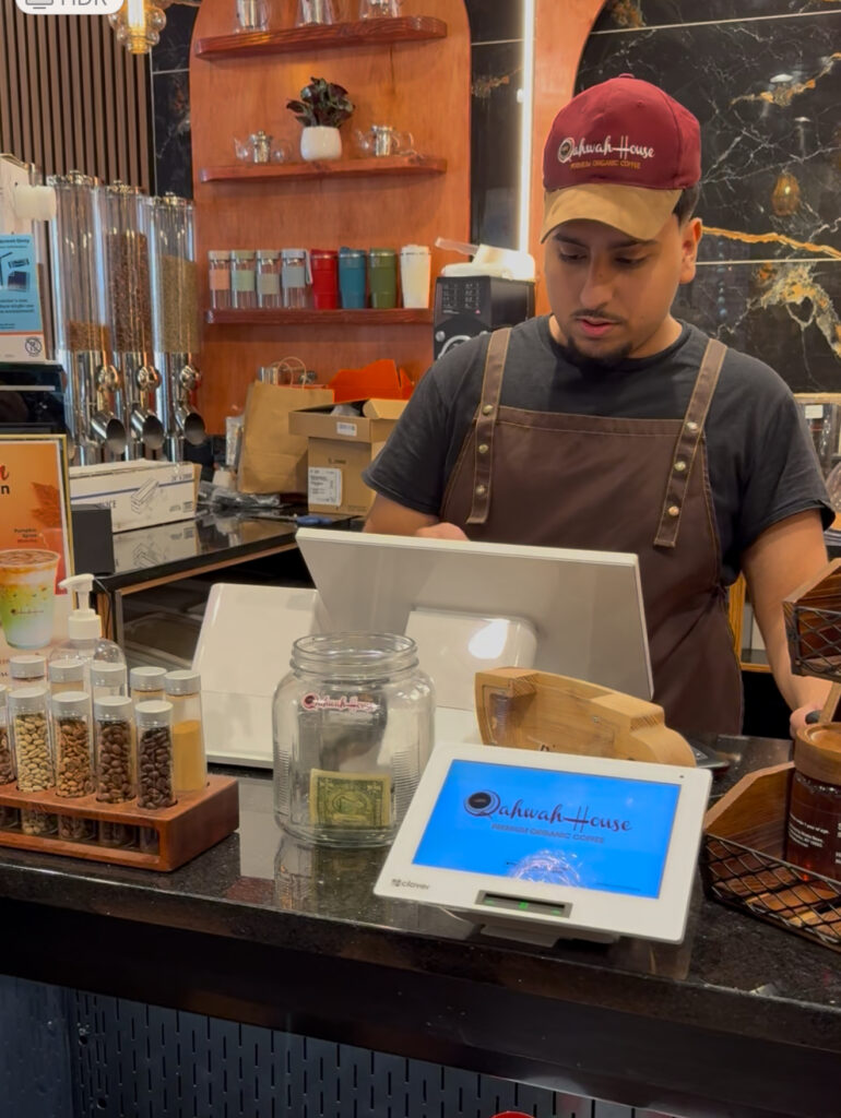Abraham lit up. “The difference in coffee? So our coffee is organically grown in Yemen, sun dried, handpicked, no chemicals whatsoever. And when it gets shipped over here, we roast it in-house so you get the fresh taste.”