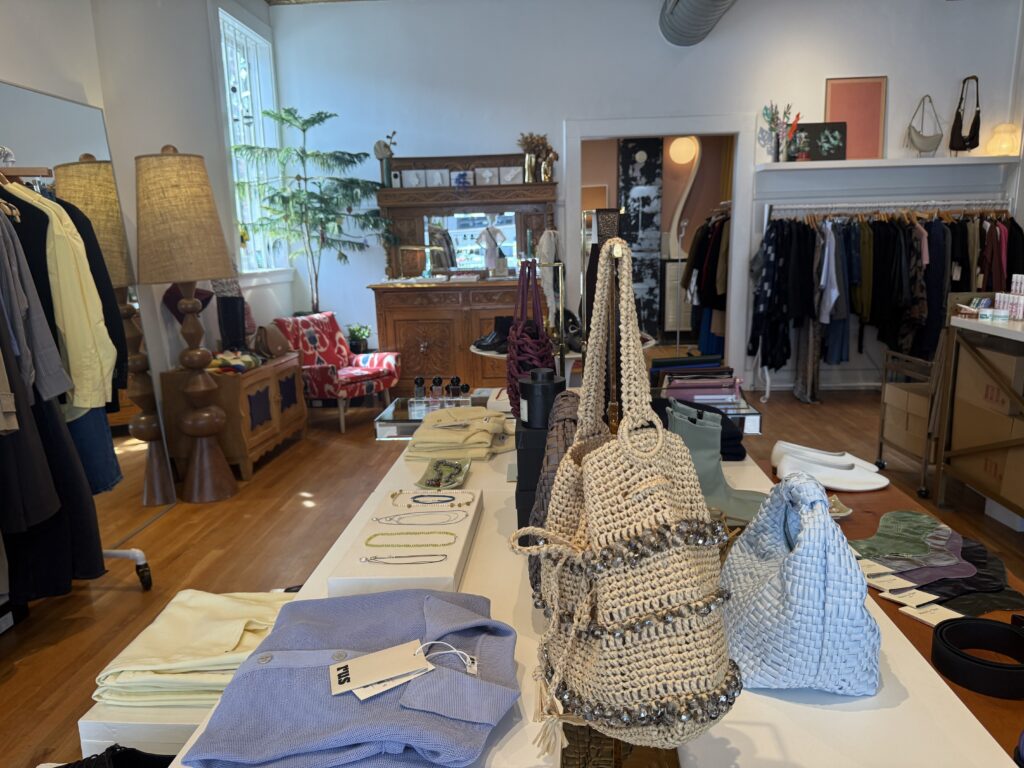 “I love the versatility. It’s very unique,” Wendy said, scanning the racks. “The owner mentioned that she works with a lot of artists, so I can tell the artistic touch in the designs. Even looking at an umbrella — it’s a beautiful color. If you’re looking for a unique piece, I think this is worth it.”